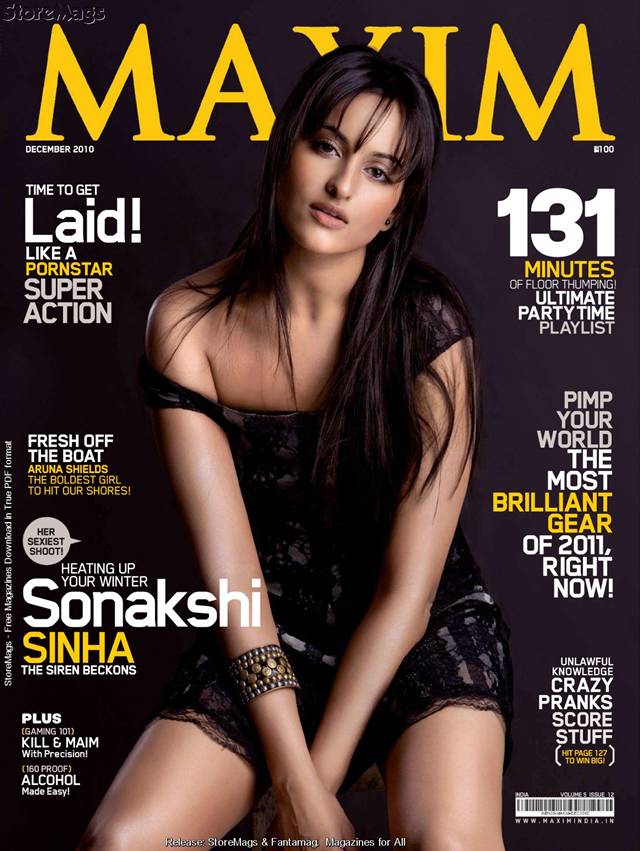 Sonakshi Sinha Photoshoot For Maxim India (December 2010). Sonakshi Sinha is the cover girl for Maxim India Magazine for the month of December 2010. According to Maxim, Sonakshi on the cover to heat this winter, but unfortunately after looking at photoshoot it fails. Sonakshi is new face in bollywood and defiantly has good features in her. More images after the break...